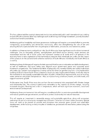 In addition to these economic and political risks, South Africa also faces significant social and environmental