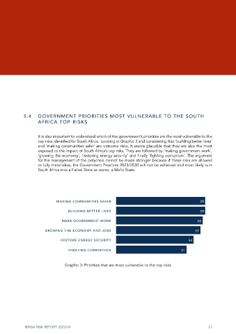5.3 SOUTH AFRICA TOP RISKS WITH HIGHEST IMPACT ON 5.4 GOVERNMENT PRIORITIES MOST VULNERABLE TO THE SOUTH