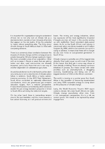 disrupt infrastructure (road, rail and sea/ports) in that the supply logistics of goods to South Africa achieving the reduction targets. contains climate risk under South Africa’s risk radar.