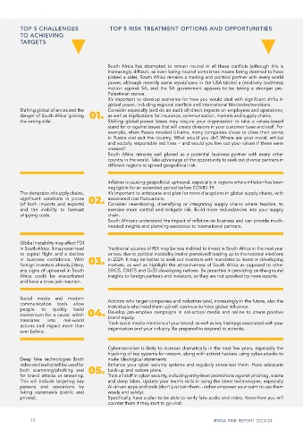 in South Africa. It may even lead Traditional sources of FDI may be less inclined to invest in South Africa in the next year