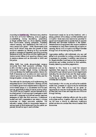 Illicit activities tend to be penetrative and impact the fibre of society. It is a concern that theft of resources such as cable and coal; local and including the security forces and the legal system.