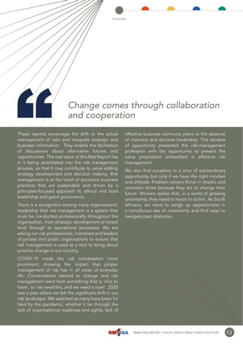 IRMSA RISK REPORT • SOUTH AFRICA RISKS • EIGHTH EDITION 13