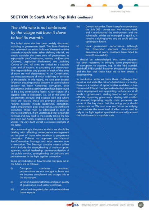 IRMSA RISK REPORT • SOUTH AFRICA RISKS • EIGHTH EDITION 43
