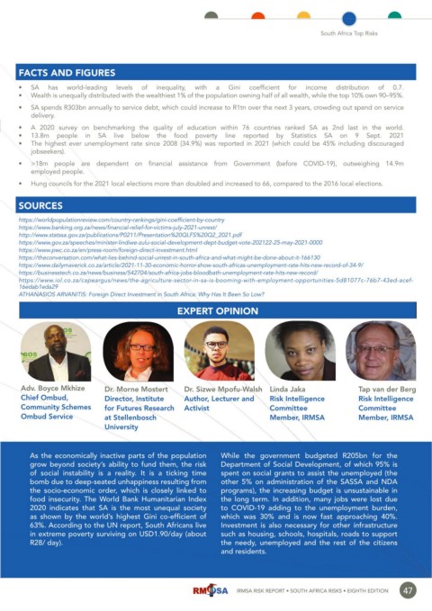 IRMSA RISK REPORT • SOUTH AFRICA RISKS • EIGHTH EDITION 47
