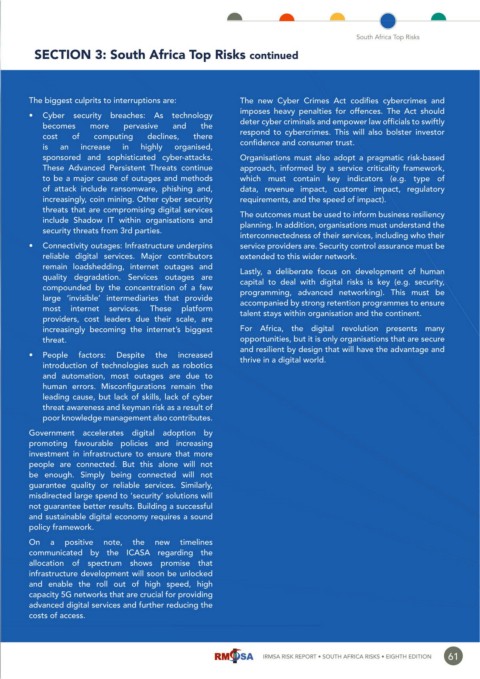 IRMSA RISK REPORT • SOUTH AFRICA RISKS • EIGHTH EDITION 61