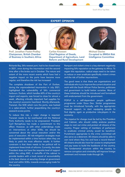IRMSA RISK REPORT • SOUTH AFRICA RISKS • EIGHTH EDITION 63